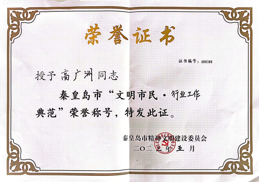 華電測控高廣洲同志榮獲秦皇島市“文明市民 行業(yè)工作典范”榮譽(yù)稱(chēng)號